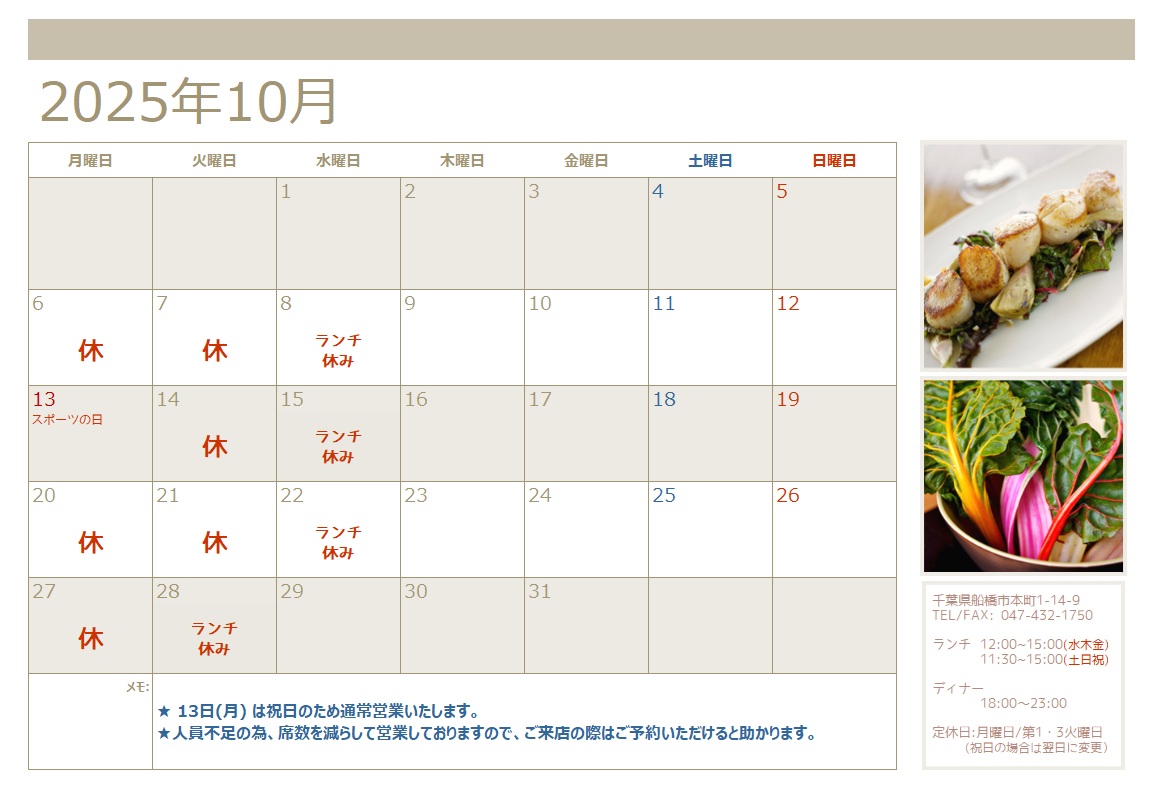 10月6日㈪-7日㈫、14日㈬、20日㈪-21日㈫、27日㈪